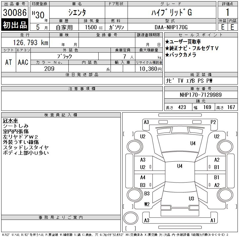 TOYOTA SIENTA HYBRID G - лот 30086