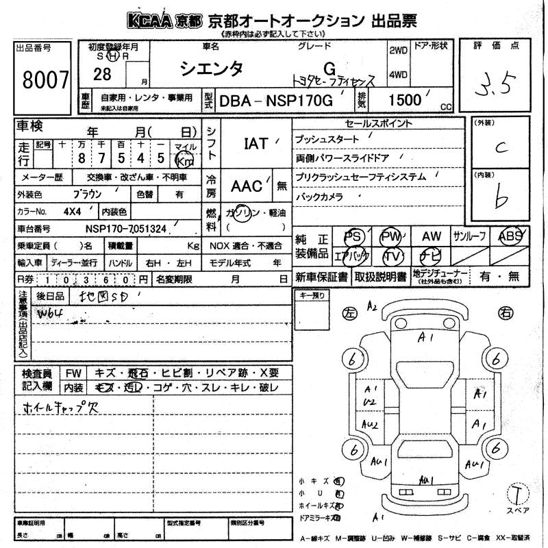 TOYOTA SIENTA G TSS - лот 8007