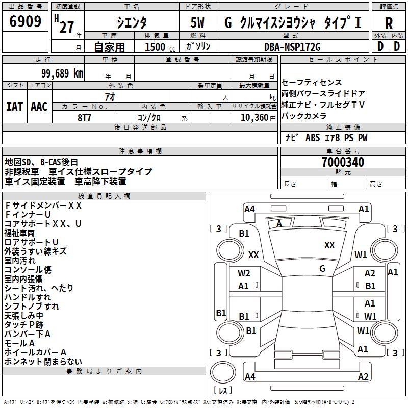 TOYOTA SIENTA GKRU MY S USE CAR TYPE I - лот 6909