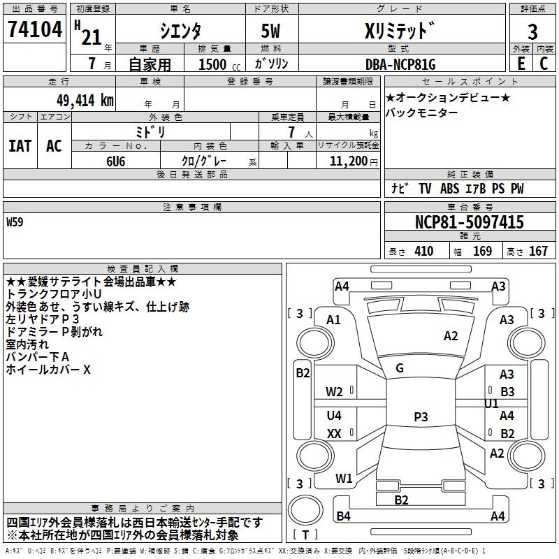TOYOTA SIENTA X LIMITED - лот 74104