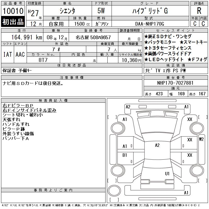 TOYOTA SIENTA HYBRID G - лот 10010