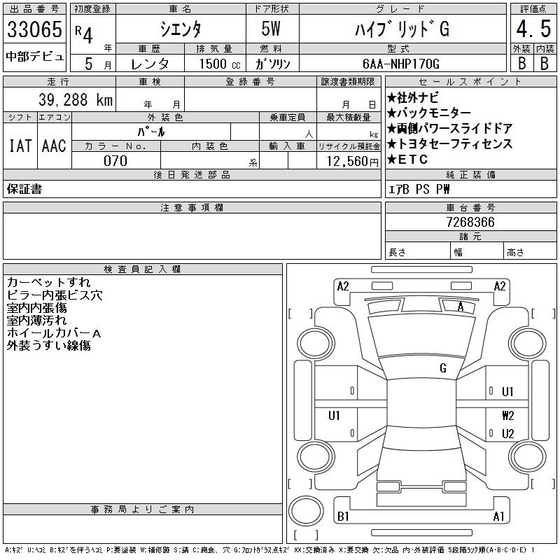 TOYOTA SIENTA HYBRID G - лот 33065