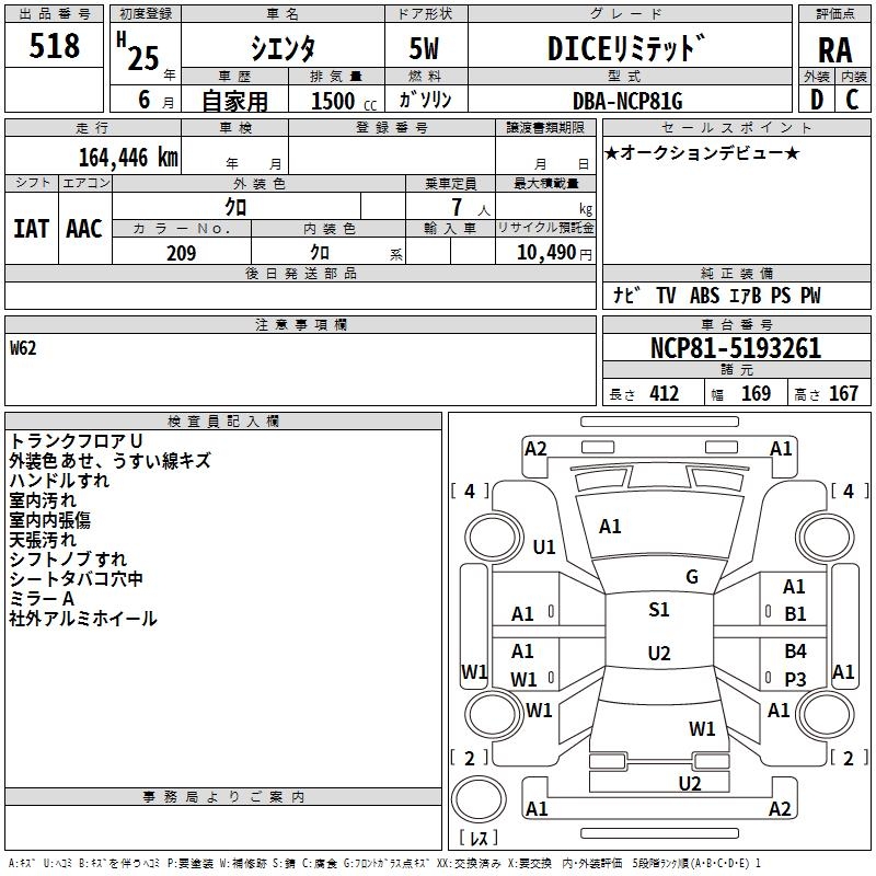 TOYOTA SIENTA DICE LIMITED - лот 518