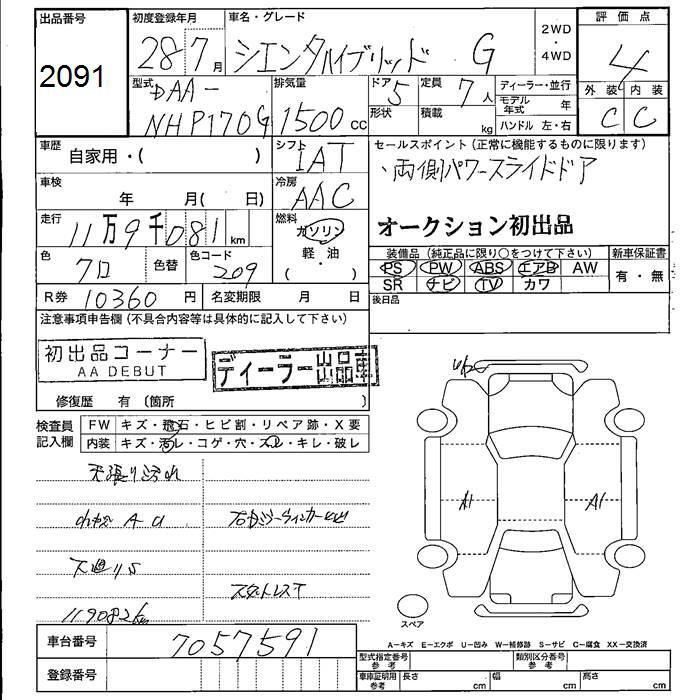 TOYOTA SIENTA HYBRID G - лот 2091
