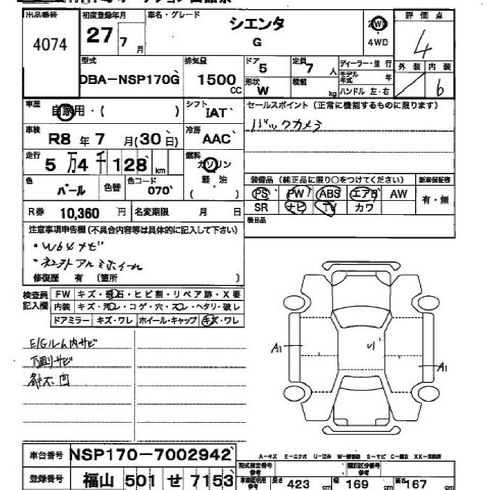 TOYOTA SIENTA G - лот 4074