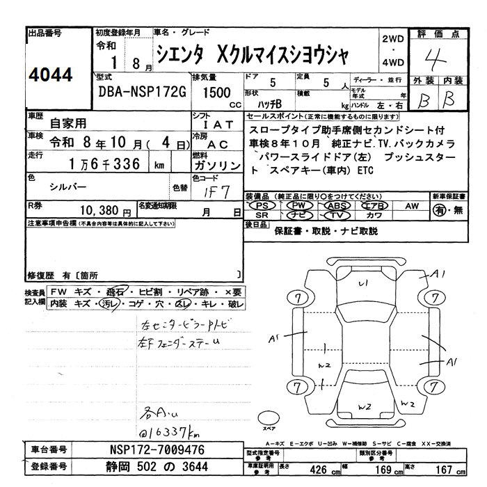 TOYOTA SIENTA XKRU MY S USE CAR - лот 4044