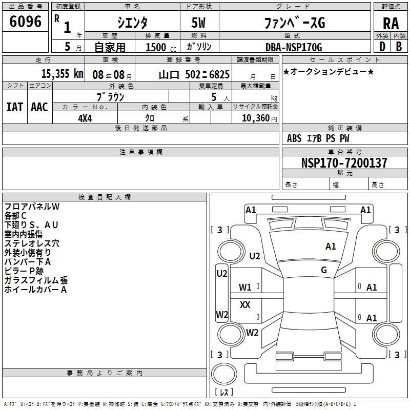 TOYOTA SIENTA FAN BASE G - лот 6096