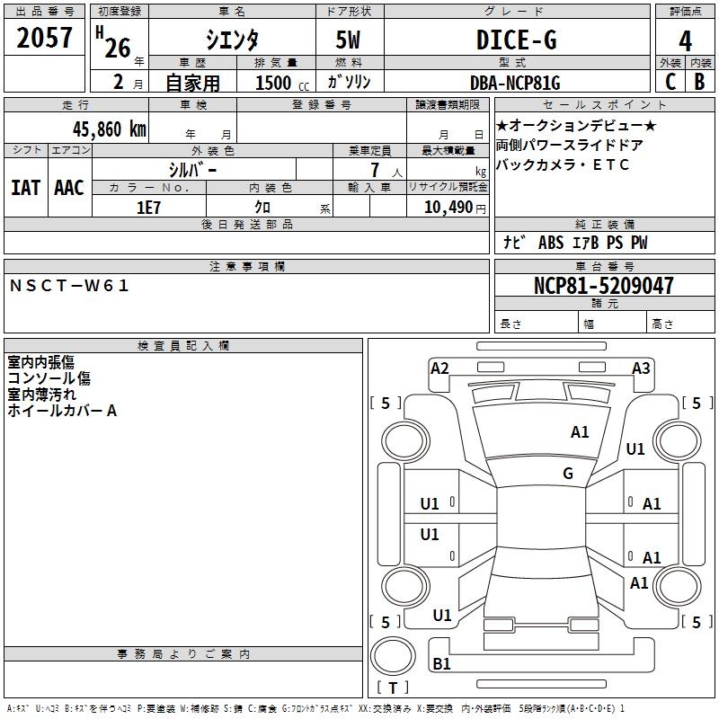 TOYOTA SIENTA DICE-G - лот 2057
