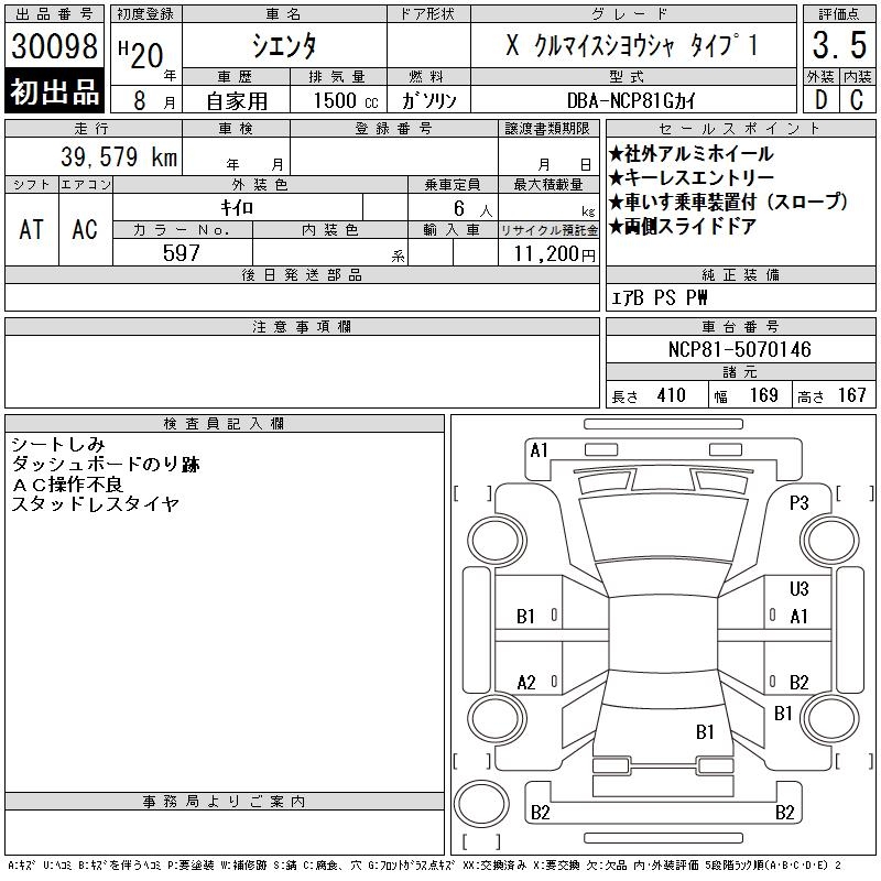 TOYOTA SIENTA XKRU MY S USE CAR TYPE 1 - лот 30098