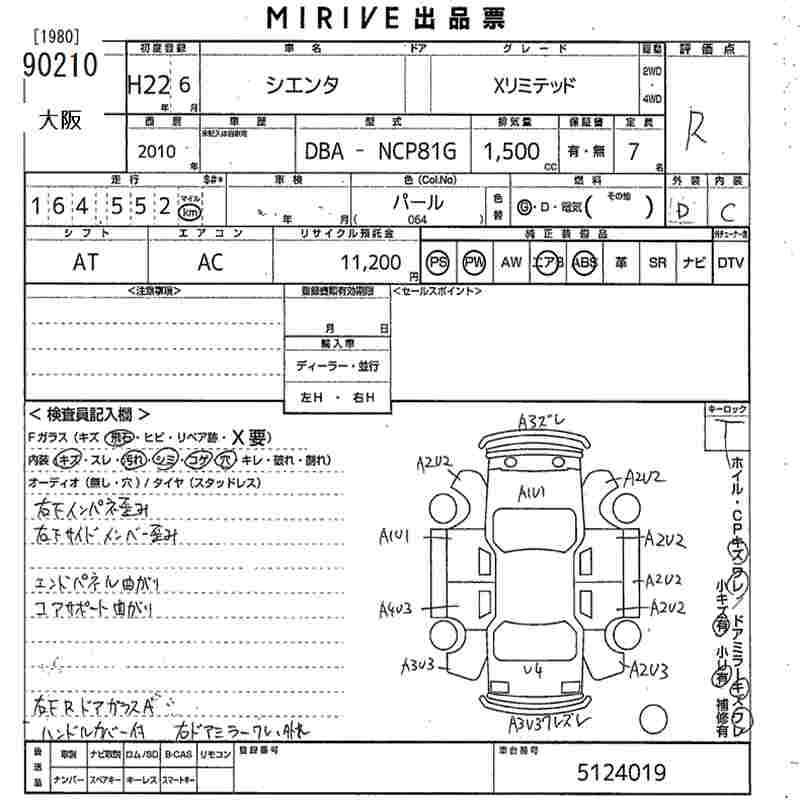 TOYOTA SIENTA X LIMITED - лот 90210