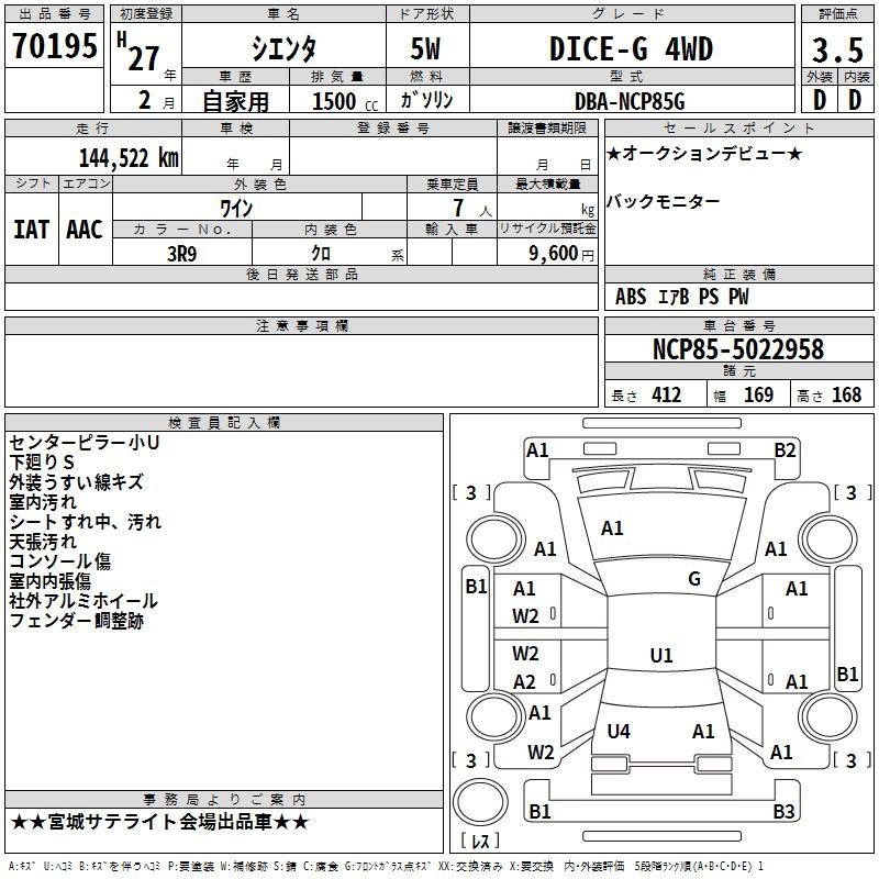 TOYOTA SIENTA DICE-G 4WD - лот 70195
