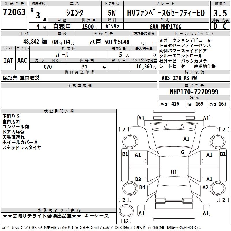TOYOTA SIENTA HV FAN BASE G SAFETY -ED - лот 72063