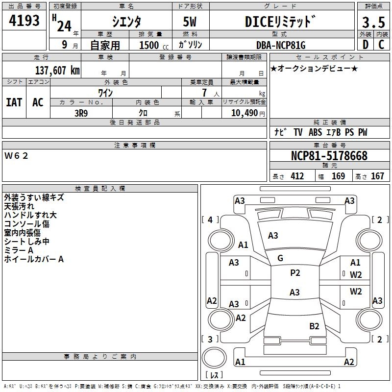 TOYOTA SIENTA DICE LIMITED - лот 4193