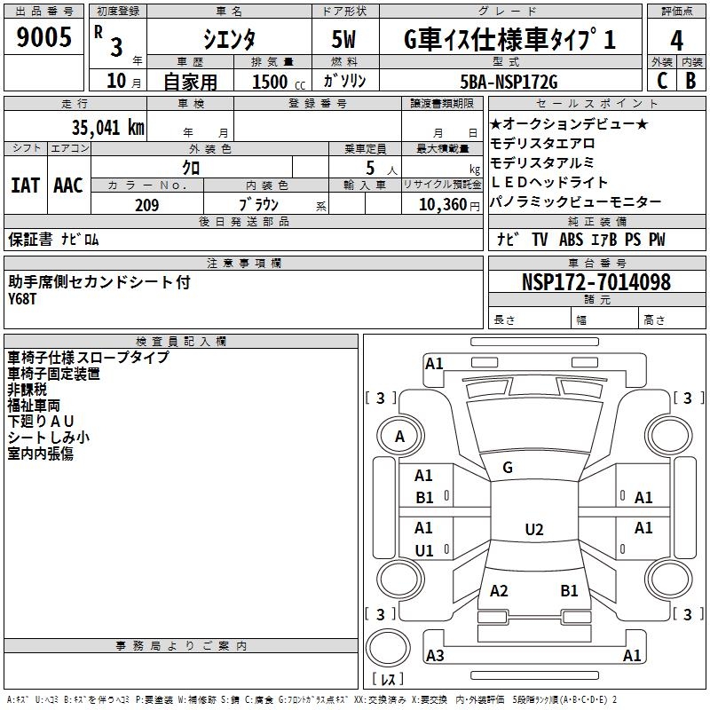 TOYOTA SIENTA GKRU MY S USE CAR TYPE 1 - лот 9005