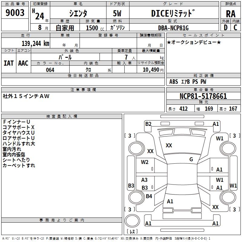 TOYOTA SIENTA DICE LIMITED - лот 9003