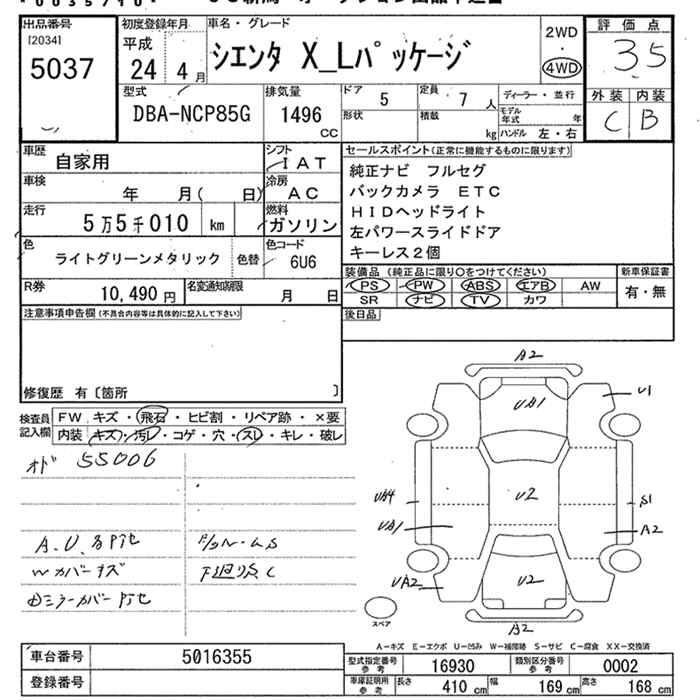 TOYOTA SIENTA 4WD X L PACKAGE - лот 5037