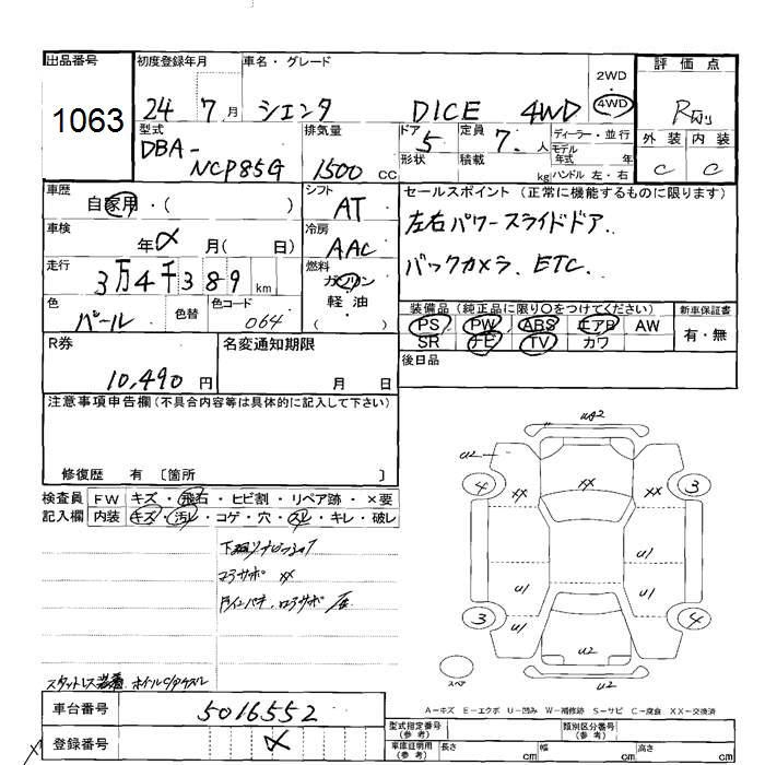 TOYOTA SIENTA 4WD DICE - лот 1063