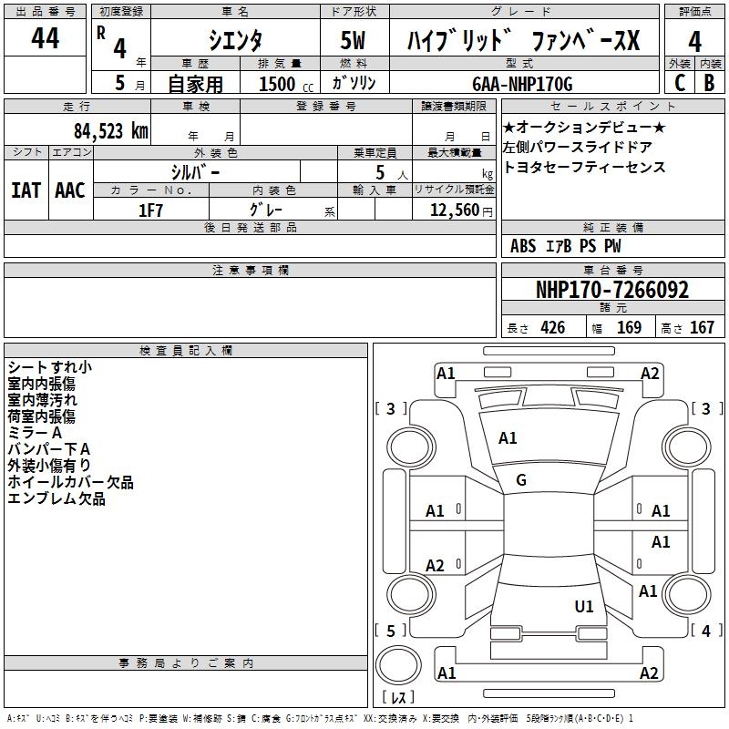 TOYOTA SIENTA HYBRID FAN BASE X - лот 44