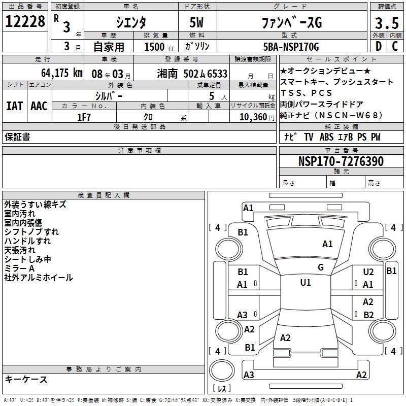 TOYOTA SIENTA FAN BASE G - лот 12228