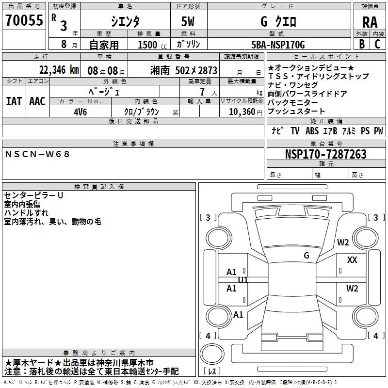 TOYOTA SIENTA GKERO - лот 70055