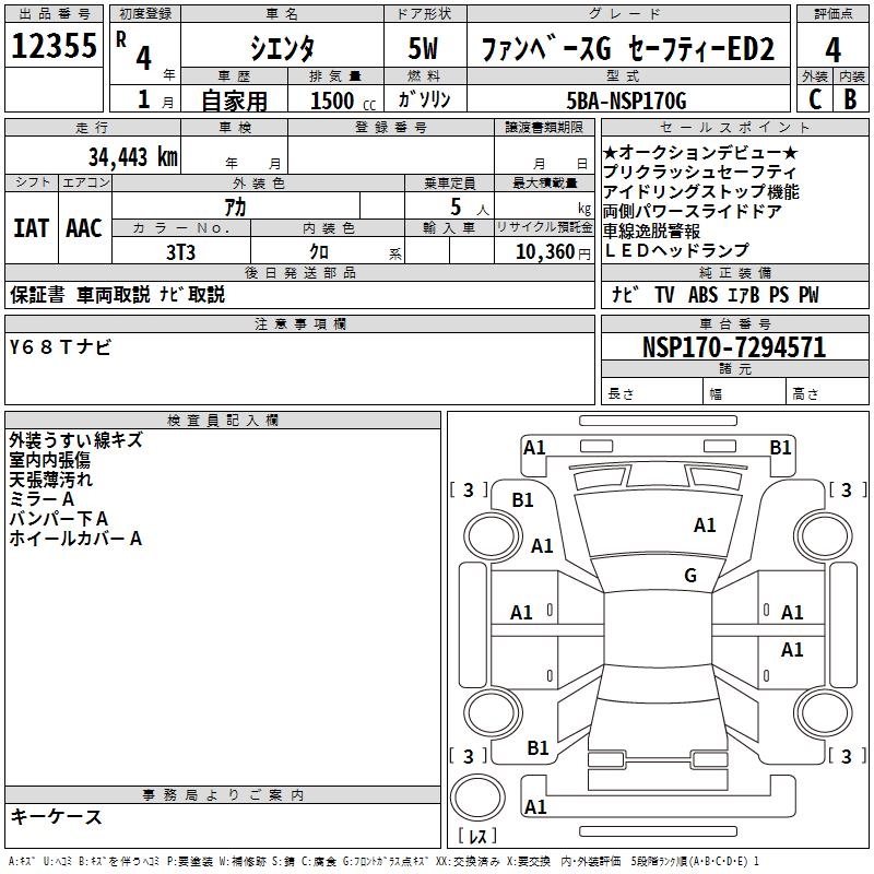 TOYOTA SIENTA FAN BASE G SAFETY -ED2 - лот 12355