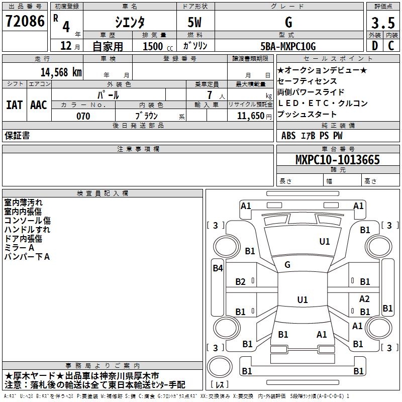 TOYOTA SIENTA G - лот 72086