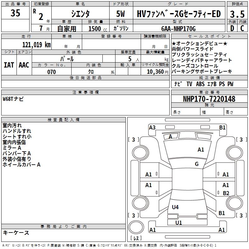 TOYOTA SIENTA HV FAN BASE G SAFETY -ED - лот 35