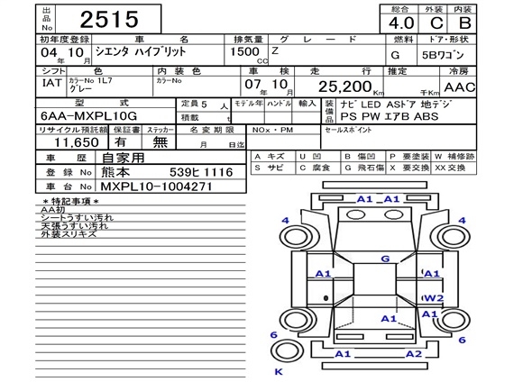 TOYOTA SIENTA Z - лот 2515
