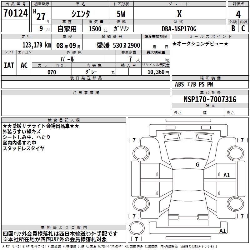 TOYOTA SIENTA X - лот 70124
