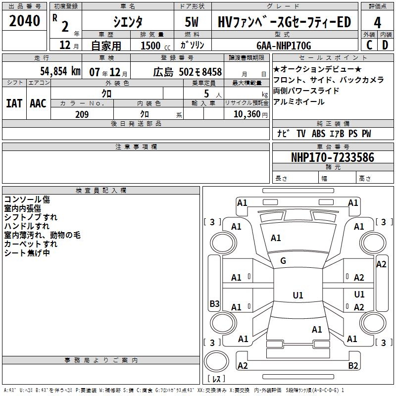 TOYOTA SIENTA HV FAN BASE G SAFETY -ED - лот 2040