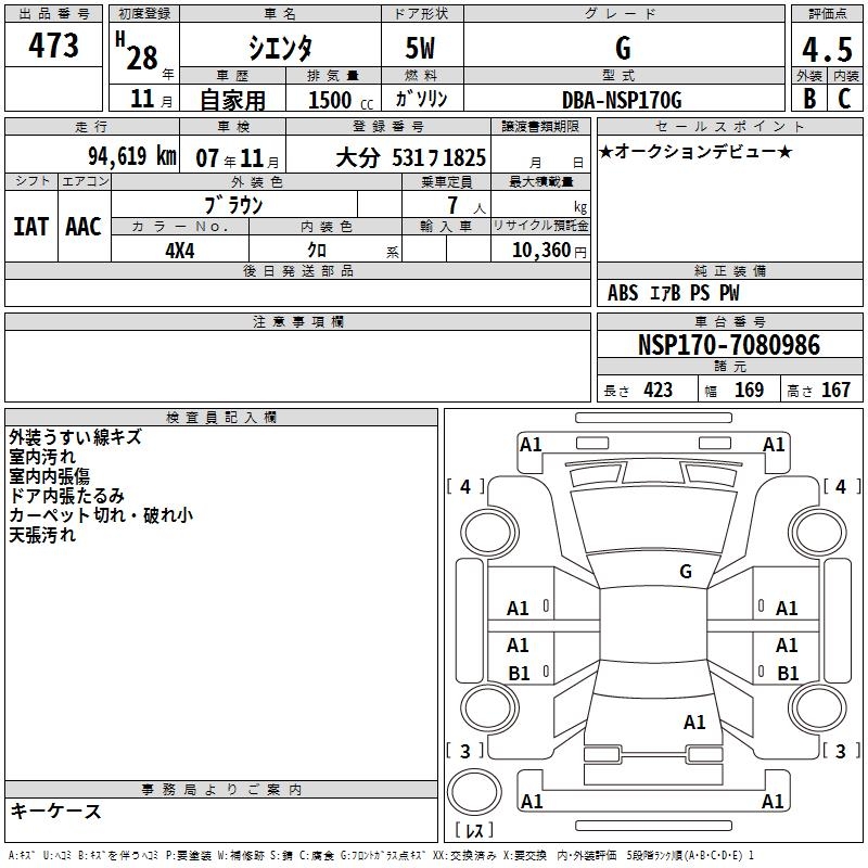 TOYOTA SIENTA G - лот 473