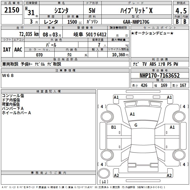 TOYOTA SIENTA HYBRID X - лот 2150