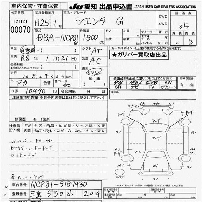 TOYOTA SIENTA G - лот 70