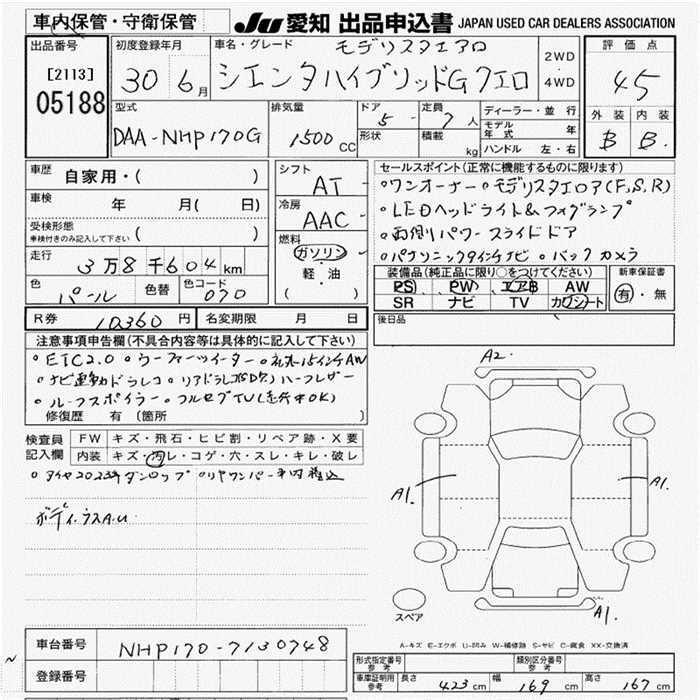 TOYOTA SIENTA HYBRID GKERO - лот 5188