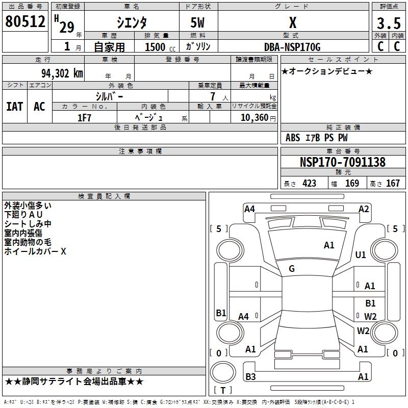 TOYOTA SIENTA X - лот 80512