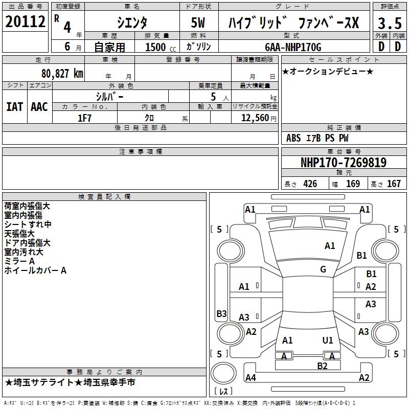 TOYOTA SIENTA HYBRID FAN BASE X - лот 20112