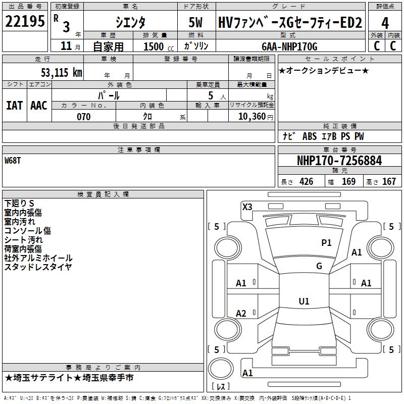 TOYOTA SIENTA HV FAN BASE G SAFETY -ED2 - лот 22195
