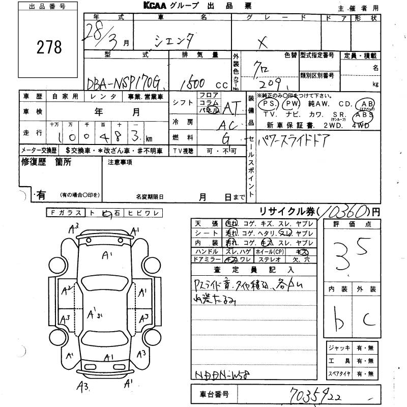 TOYOTA SIENTA X - лот 278