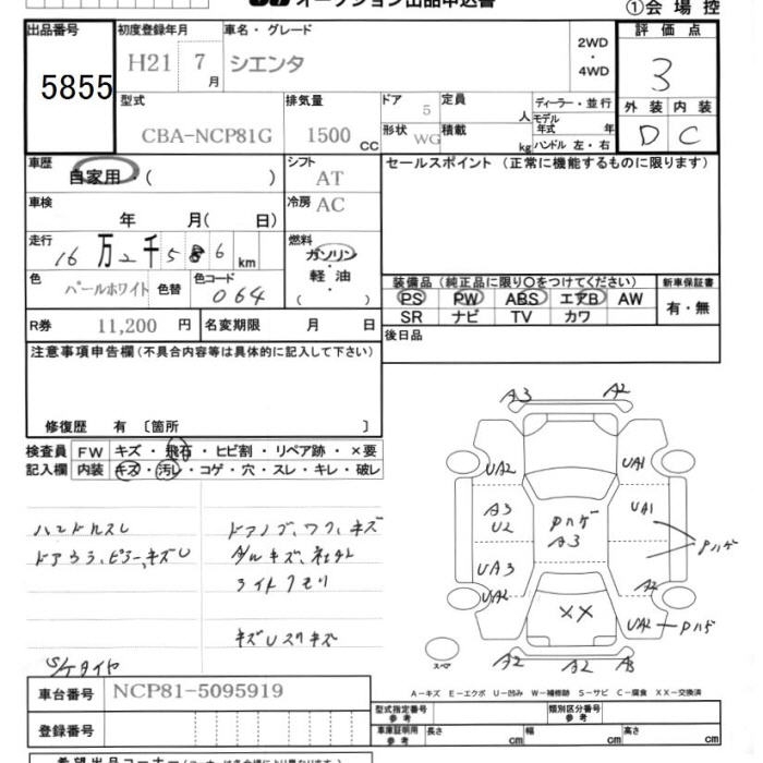 TOYOTA SIENTA - лот 5855