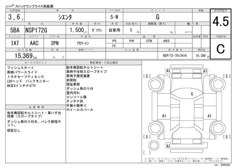 TOYOTA SIENTA - лот 18547