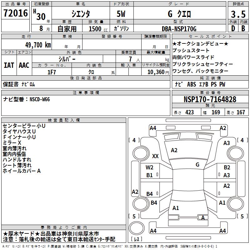 TOYOTA SIENTA GKERO - лот 72016