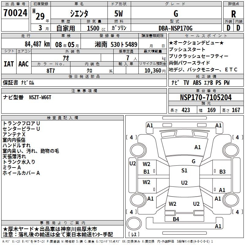 TOYOTA SIENTA G - лот 70024