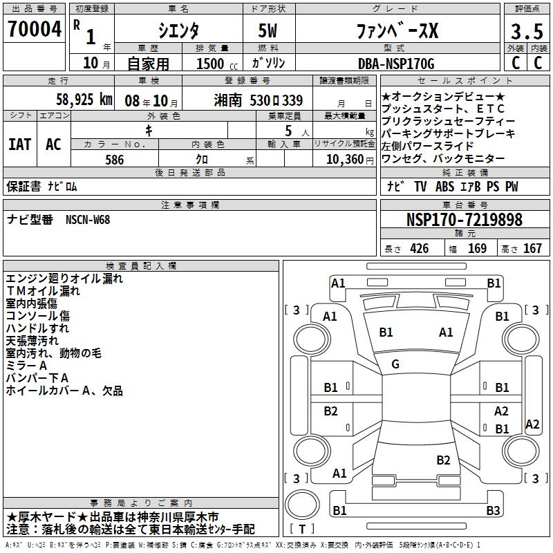 TOYOTA SIENTA FAN BASE X - лот 70004