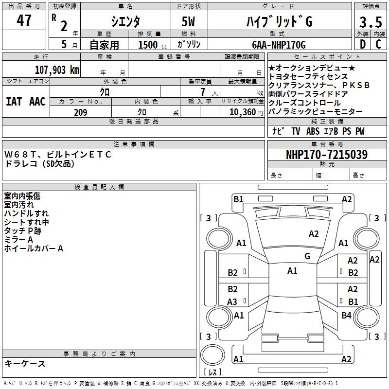 TOYOTA SIENTA HYBRID G - лот 47