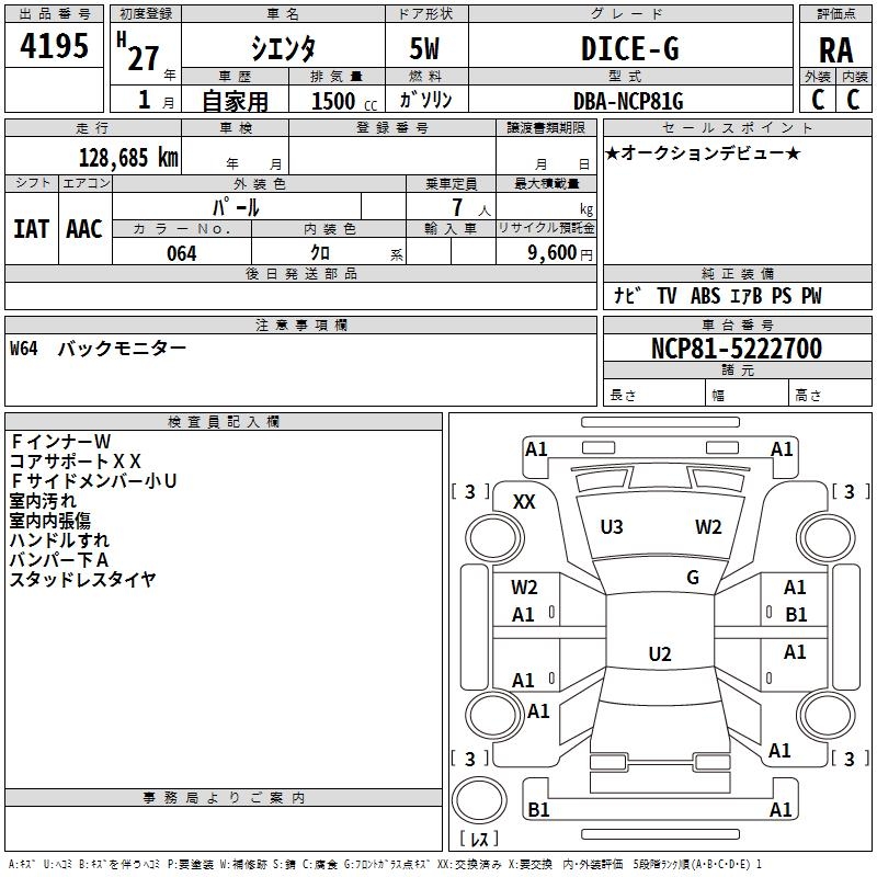 TOYOTA SIENTA DICE-G - лот 4195