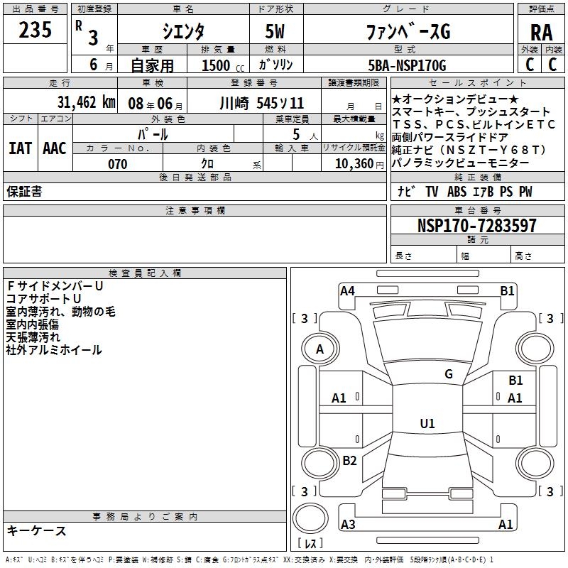 TOYOTA SIENTA FAN BASE G - лот 235