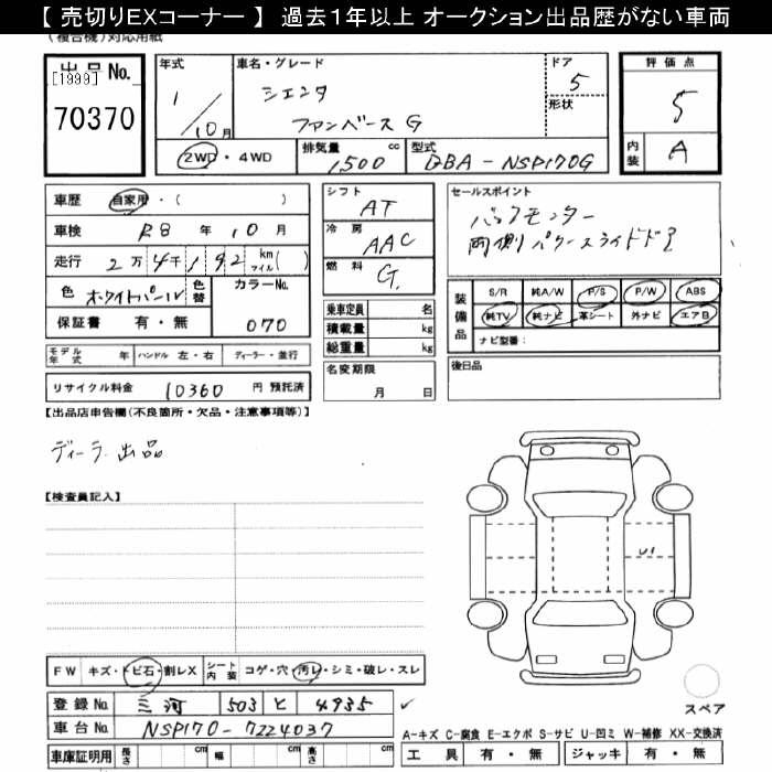 TOYOTA SIENTA FAN BASE G - лот 70370