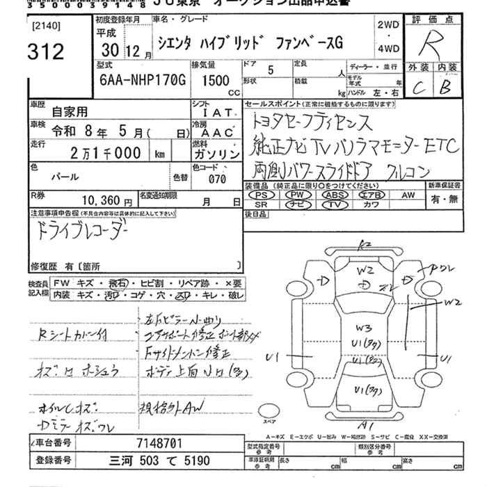 TOYOTA SIENTA HYBRID FAN BASE G - лот 312