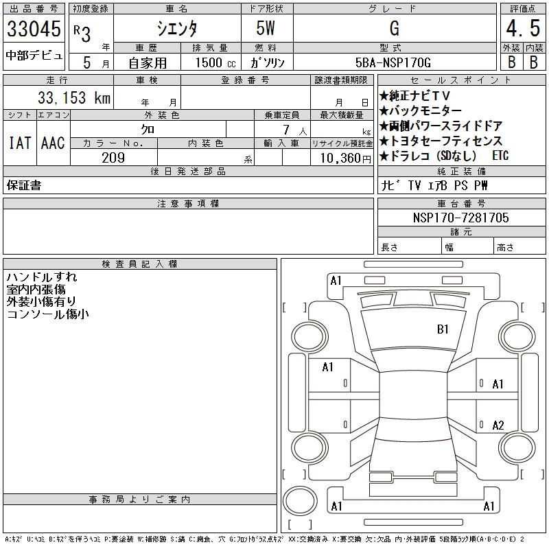 TOYOTA SIENTA G - лот 33045