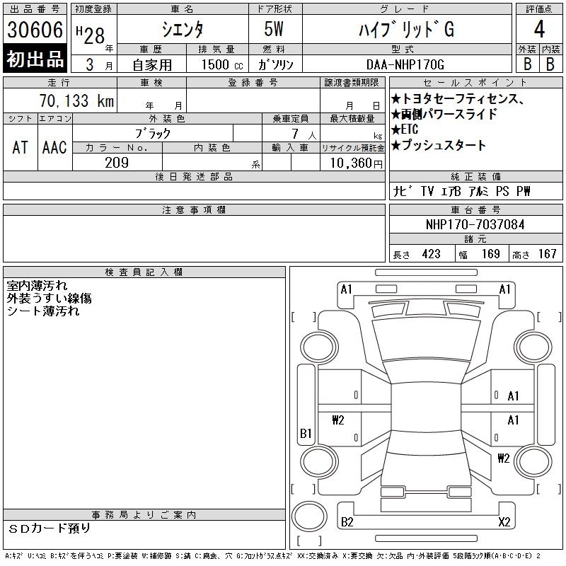 TOYOTA SIENTA HYBRID G - лот 30606